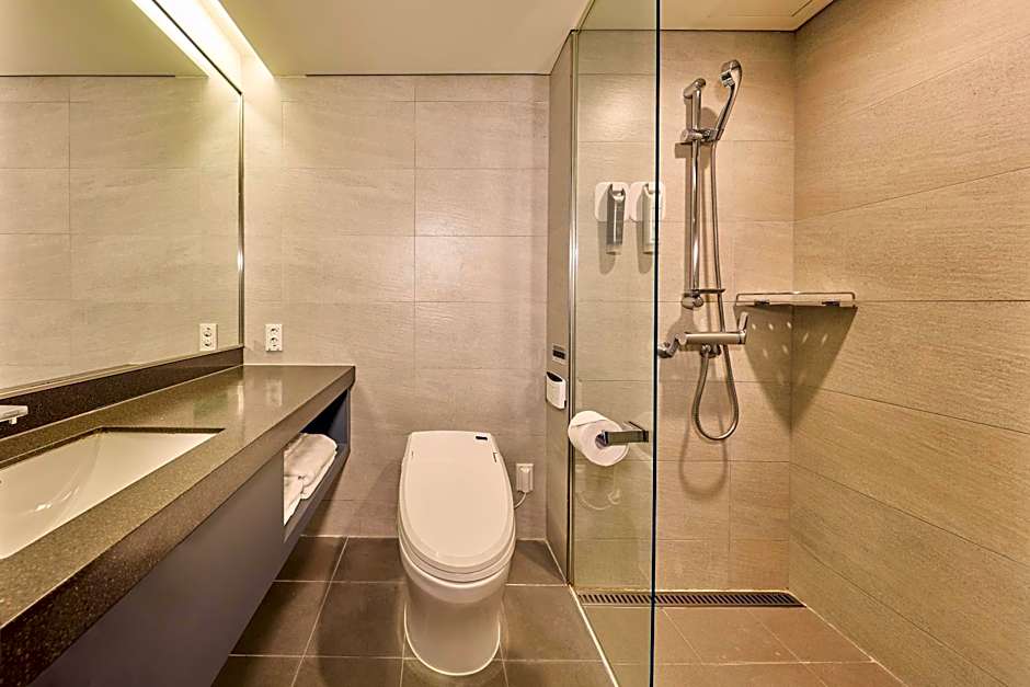 Featuring a private entrance, this air-conditioned suite consists of 1 living room, 1 separate bedroom and 1 bathroom with a shower and a bidet. The suite provides soundproof walls, a seating area, a wardrobe, a flat-screen TV with cable channels, as well as city views. The unit offers 2 beds.